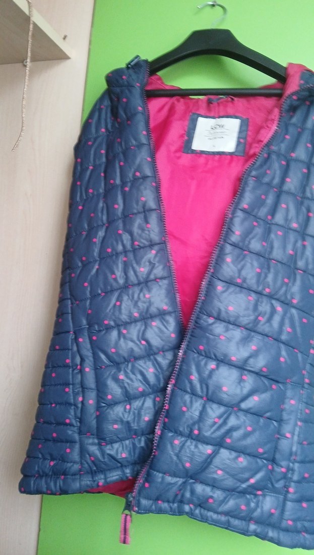 Fermuarlı, kapitone desenli kız çocuk yeleği. Kolsuz, notched lapel yakalı, mavi-gri ve pembe detaylı, rahat ve şık sokak stiline uygun yelek.