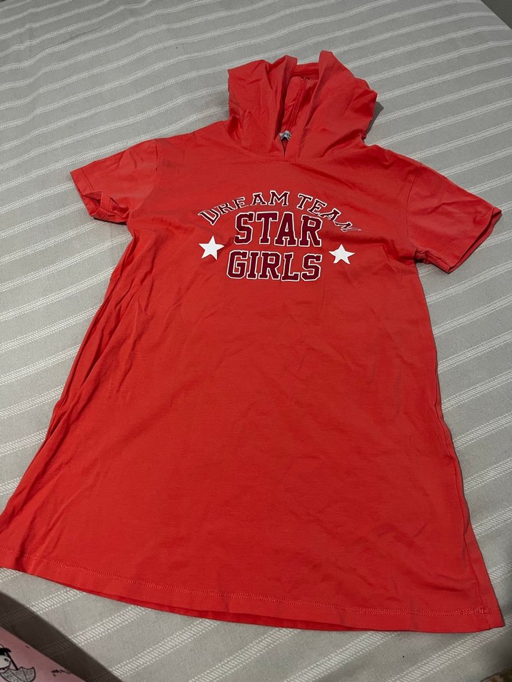 Kırmızı kısa kollu, vücuda oturan kız çocuk elbise. "DREAM TEAM STAR GIRLS" baskılı. Yeni gibi