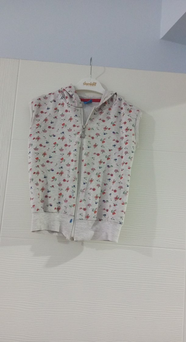 Kız çocukları için kapüşonlu, fermuarlı, baskılı ve bol kesim yelek. Yumuşak sentetik kumaştan, günlük sokak stiline uygun. Beyaz ve gri tonlarında.