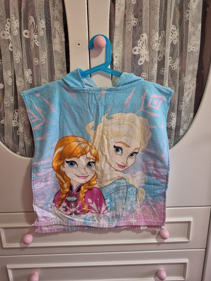Kız Çocuk Kapüşonlu Baskılı Havlu Panço