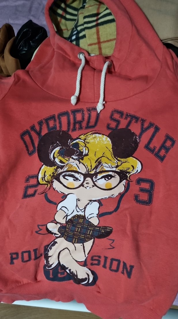 Kız çocukları için kapüşonlu, uzun kollu, baskılı ve fermuarlı kırmızı renkli, sentetik kumaştan yapılmış dar kesim sweatshirt. Trendy sokak tarzına uygun.