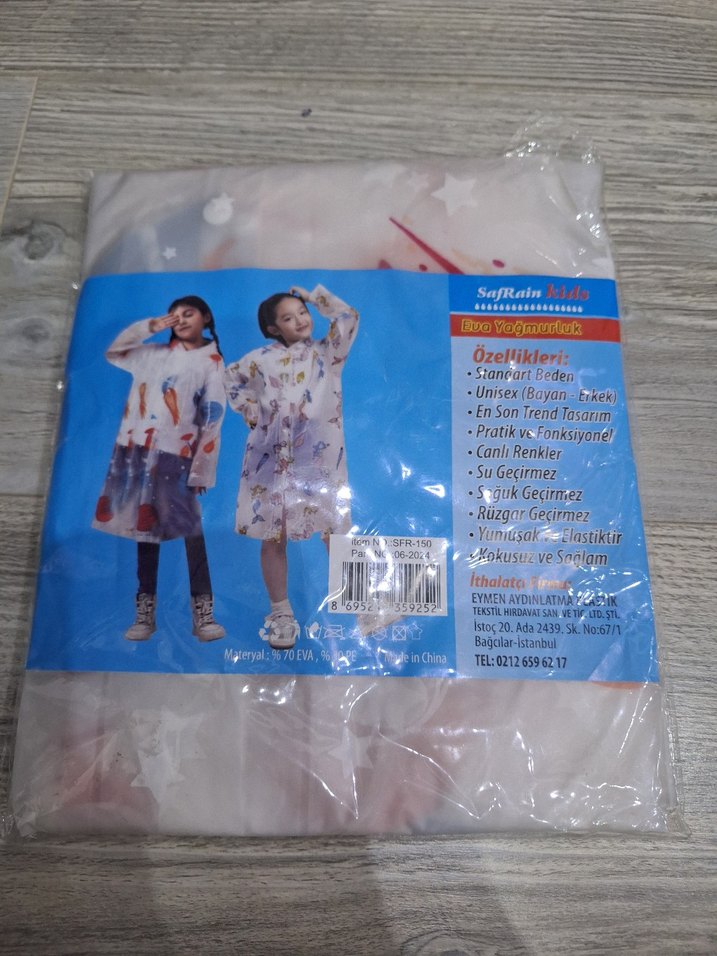Kız çocukları için kapüşonlu, bol kesim, pastel renkli baskılı yağmurluk. Su geçirmez plastikten, cırt cırtlı, rüzgar geçirmez ve uniseks özellikte. ️
