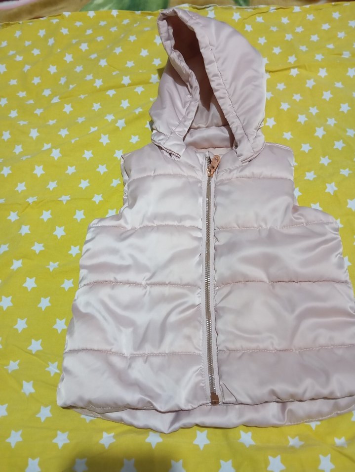 Kız çocukları için kapüşonlu, fermuarlı ve kolsuz beyaz yelek. Yumuşak dolgulu ve pastel tonlarda, günlük kullanıma uygun.