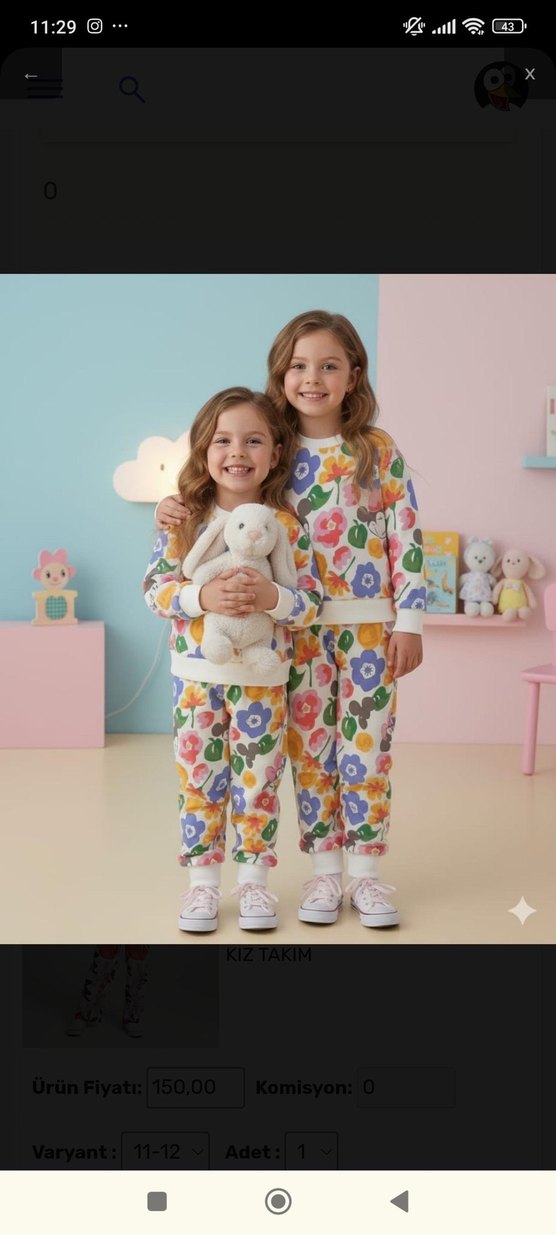 Pastel çok renkli çiçek desenli, kapüşonlu ve uzun kollu kız çocuk takımı. Yumuşak ve sıcak kumaştan, dantel detaylı, rahat kesim ve trend görünüm sunar.