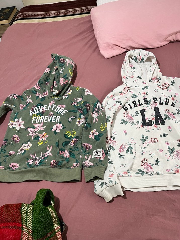 Renkli çiçek desenli, dantelli, kapüşonlu ve uzun kollu yeşil sweatshirt. Önde "ADVENTURE FOREVER" yazısı bulunur, rahat ve salaş kesim.