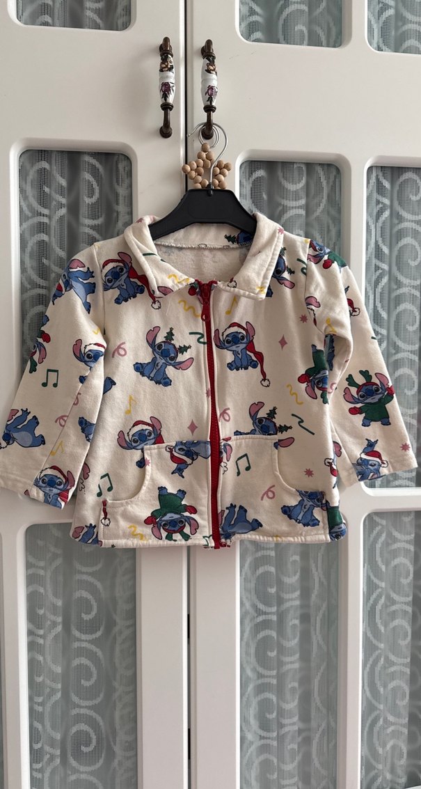Kız çocuklar için renkli desenli, yumuşak beyaz kumaştan kapüşonlu ve fermuarlı ceket. Rahat kesimiyle trend sokak stiline uygun.