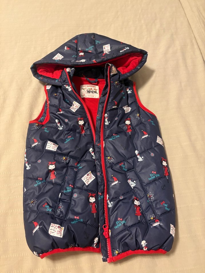 Renkli desenli, kapüşonlu ve fermuarlı kız çocuk yeleği. Yüksek yakalı, kolsuz ve sokak stiline uygun, yumuşak ve sıcak kumaştan üretilmiştir. Aslında hiç giyilmedi. Giydiği ilk gün kayboldu. Sonra bir yerlerden çıktı ama küçülmüştü. O nedenle bir daha giyemedi. Puf puf yumuşacık, çok tatlı bir yelek… Etiketinde yazan isim çıkar.