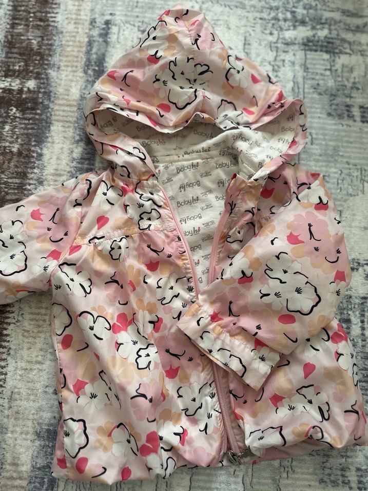 Kapüşonlu, düğmeli ve bol kesim kız çocuk yağmurluğu. Sentetik kumaştan, pastel pembe desenli, günlük sokak tarzına uygun. ☔