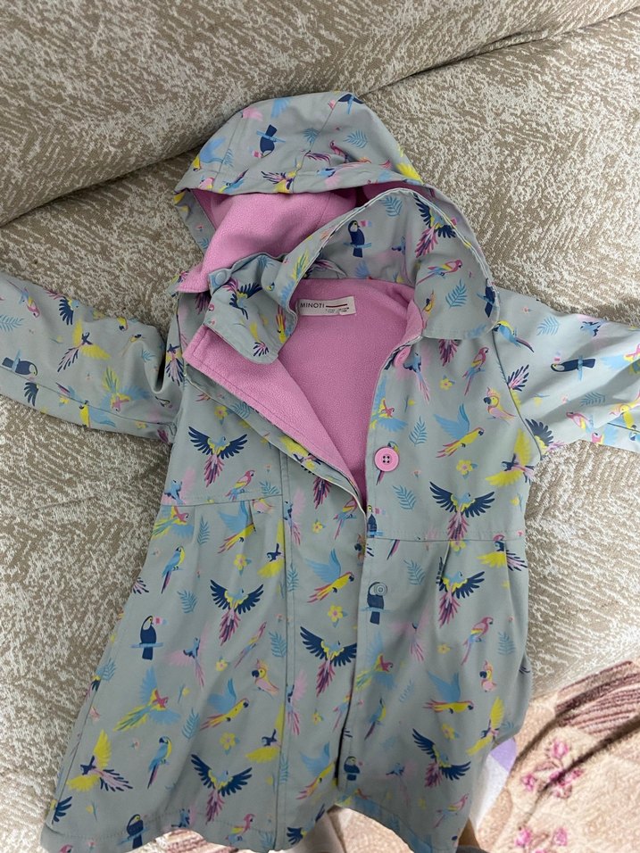Kız çocukları için kapüşonlu, fermuarlı, desenli yağmurluk. Notch yaka ve bol kesimiyle rahat ve şık bir dış giyim ürünü.Ürün yeni hiçbir deformesi kusuru yoktur:)