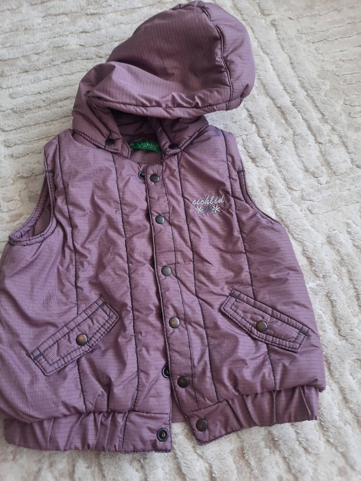 Kız çocuklar için kapüşonlu, düğmeli, yumuşak ve sıcak mor yelek. Salaş kesimi ve sokak tarzına uygun tasarımı vardır.