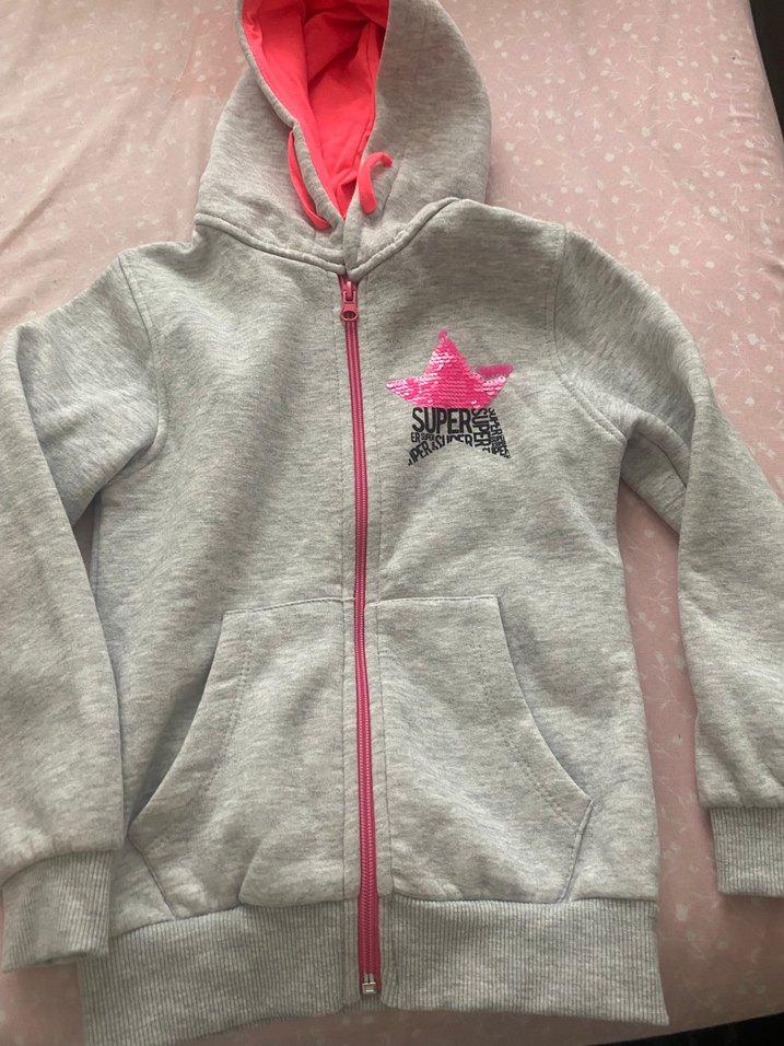 Kız çocuklar için kapüşonlu, uzun kollu ve fermuarlı gri sweatshirt. Yumuşak iç yüzey ve göğüste baskılı yıldız deseni bulunur. Rahat sokak stili için uygun. ⭐