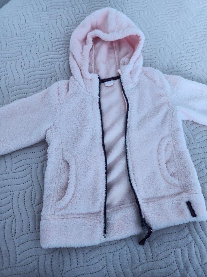 Kız çocukları için kapüşonlu ve fermuarlı, yumuşak ve sıcak kumaştan yapılmış, sade gri renkte, rahat kesimli mont. 2-3 yaş uygundur. Açık pembe