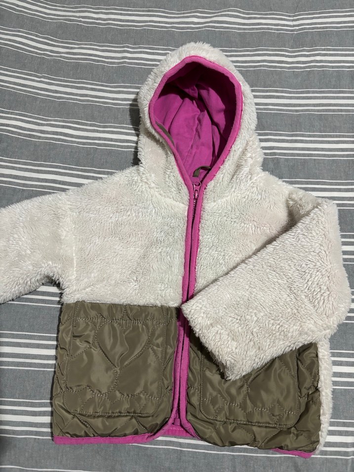İhtiyaç fazlası olduğu için satıyorum 1,5-3,5 yaş arası rahat giyer Fermuarlı ve kapüşonlu, üst kısmı yumuşak ve sıcak, alt kısmı ise kapitone görünümlü kumaştan oluşan gri kız çocuk montu. Street wear tarzında.