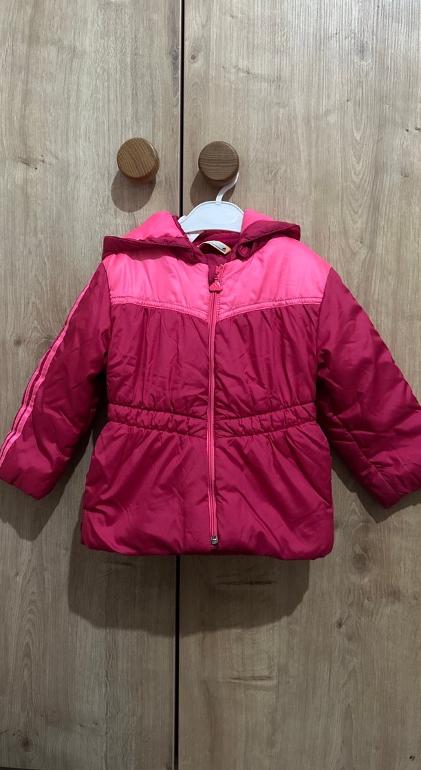 Kız çocukları için kapüşonlu adidas mont Yıkandığı için arkasındaki logosu ve fermuar tutacağı soyuldu. Kumaşında kol kısmında ufak bir aşınma mevcut fermuarında bozukluk yoktur.