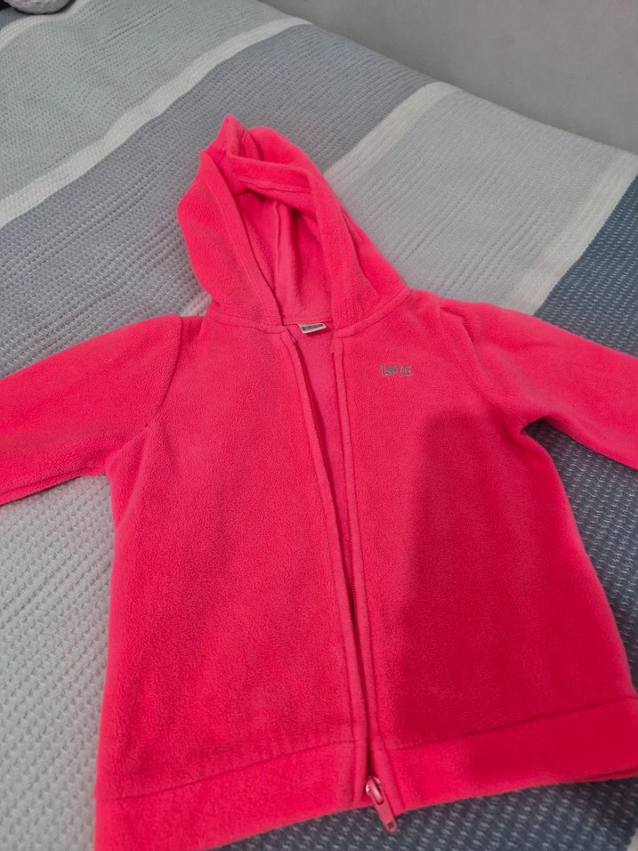 Kapüşonlu, uzun kollu ve fermuarlı kız çocuk sweatshirtü. Yumuşak ve sıcak dokuda, canlı pembe renkte, sokak stiline uygun.