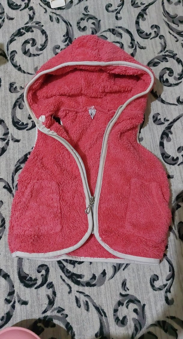 Kız çocuk kapüşonlu, fermuarlı, yumuşak ve sıcak kumaştan yapılmış, renkli pembe, kolsuz yelektir. İki ön ceplidir, günlük sokak stili için uygundur. Marka temsili. 2 yaş yazıyor 92 cm. 2 3 yaş uygundur sanıyorum
