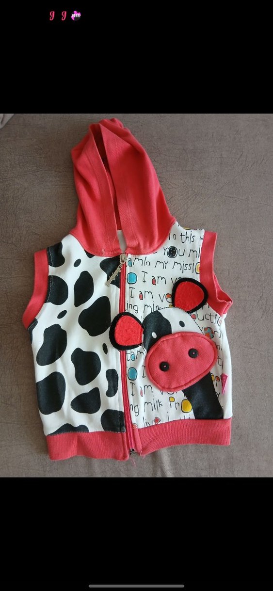 Kız çocukları için kapüşonlu, fermuarlı ve renkli baskılı desenli, sokak stili uyumlu, fitted kesim yelek.