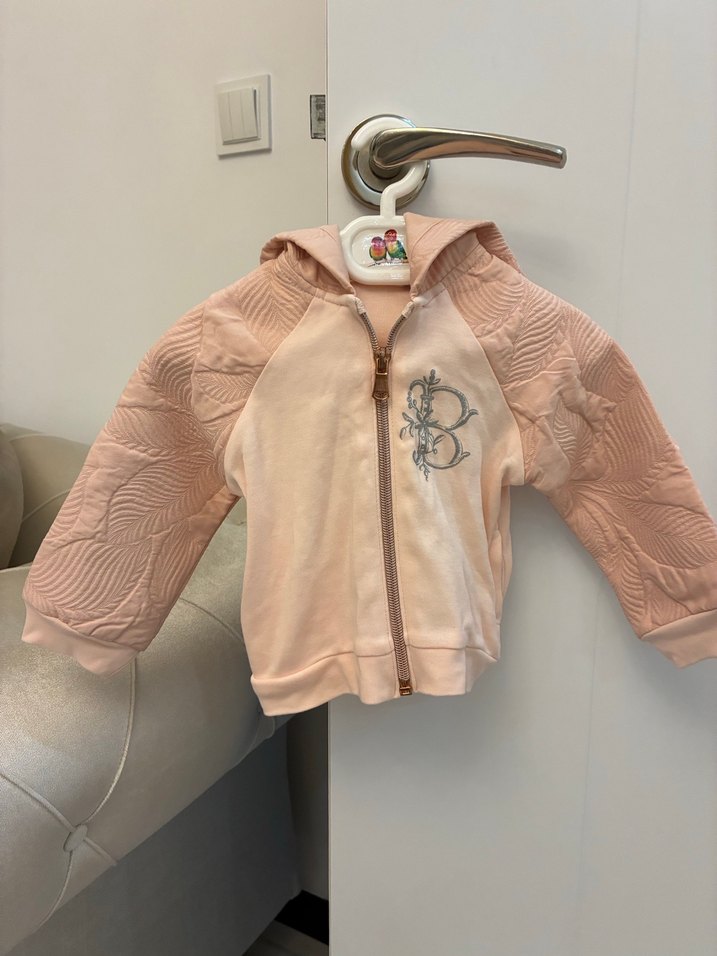 Pembe renk, kapüşonlu ve fermuarlı kız çocuk sweatshirtü, uzun kollu ve yumuşak, sıcak kumaştan üretilmiştir. Hafif baskılı ve dar kesimdir.