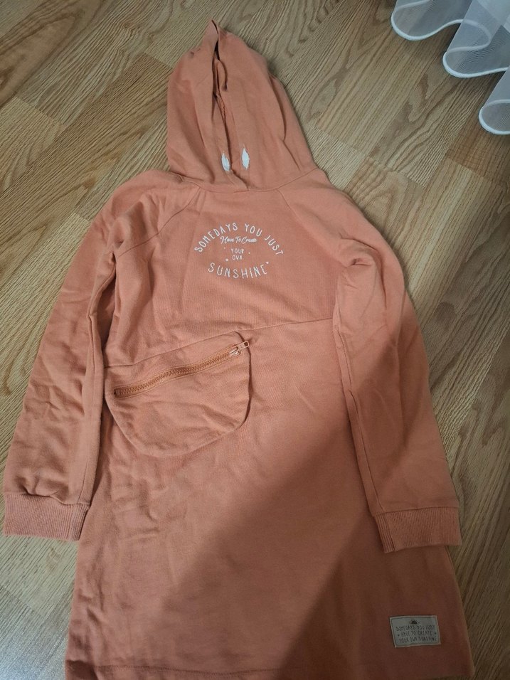 Kız çocuk kapüşonlu, uzun kollu, bol kesim sweatshirt. Yumuşak ve sıcak kumaştan, fermuarlı ön cepli ve 'SUASHINE' yazılı baskılı model. Pastel somon renkte, rahat ve şık.