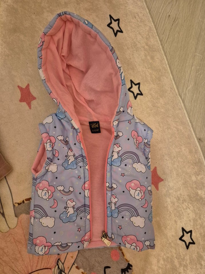 Kapüşonlu, fermuarlı ve pastel tonlarda bağlama desenli, fitted kesim kız çocuk yeleği. Yumuşak ve rahat kumaştan üretilmiştir.