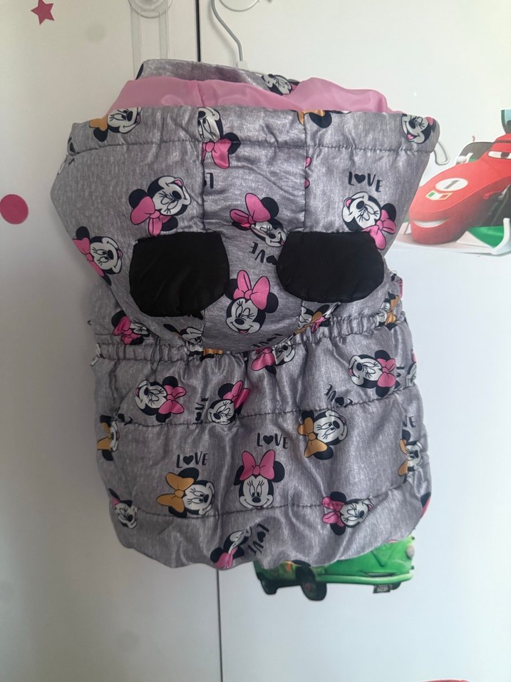 Kız Çocuk Kapüşonlu Gri Baskılı Yelek