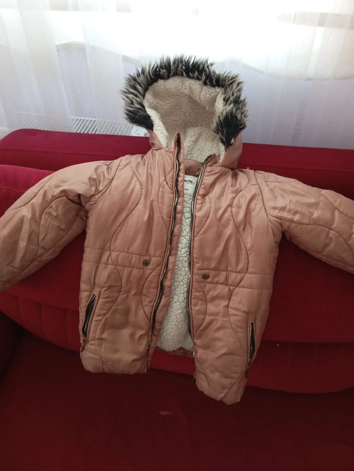 Kahverengi kapüşonlu kız çocuk ceketi, içi yumuşak kumaşla kaplı ve kapüşonunda kürk detayları bulunur, rahat sokak stiline uygundur.