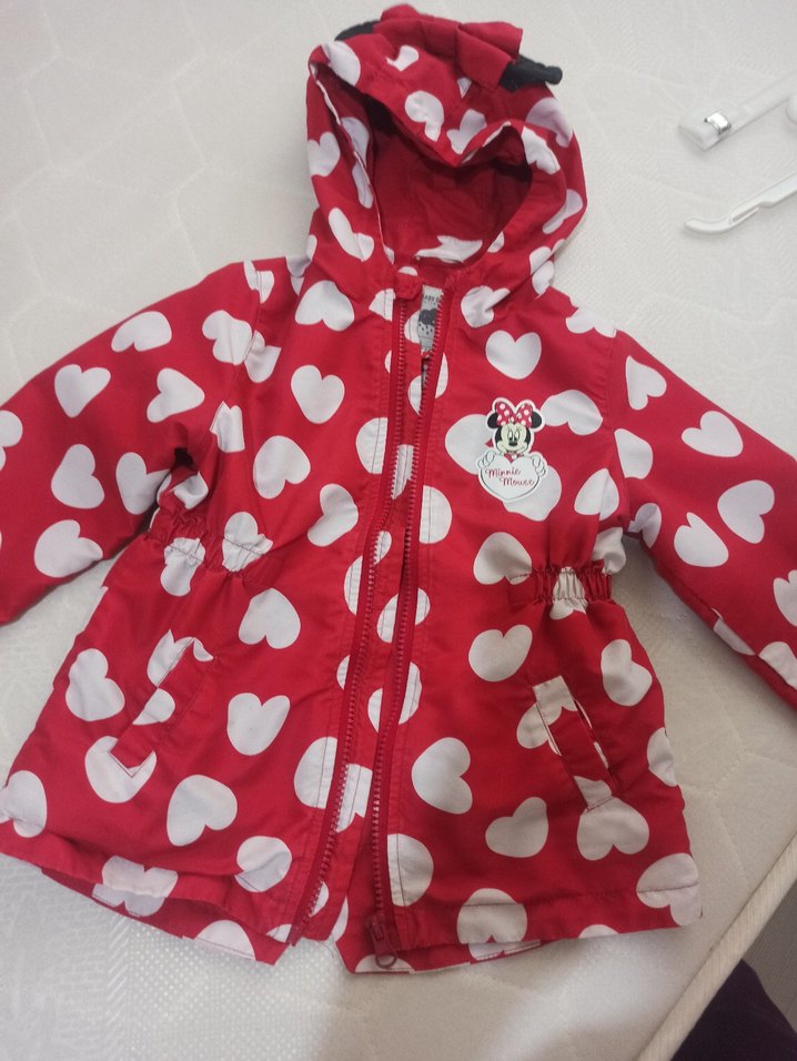 Kız çocukları için kapüşonlu, kalp desenli kırmızı yağmurluk. Fermuarlı ve yumuşak, sıcak dokulu kumaştan yapılmıştır, rahat sokak stili için uygundur. Kızıma küçüldüğü için satışta temizdir yıpranma ve leke yoktur tatlı bir ceket mevsim geçişlerinde ve serin yaz akşamlarında kullanılır