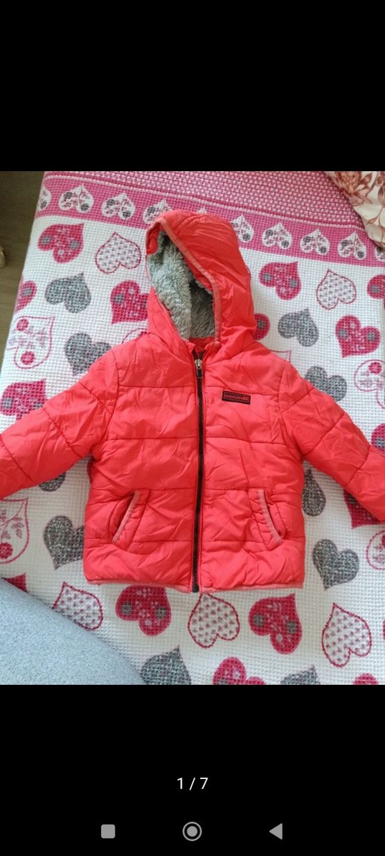 Kız çocukları için kapüşonlu ve fermuarlı kırmızı, yumuşak ve sıcak kumaştan yapılmış, rahat sokak stili mont. Desensiz ve canlı renklidir. 2yas için uygundur.