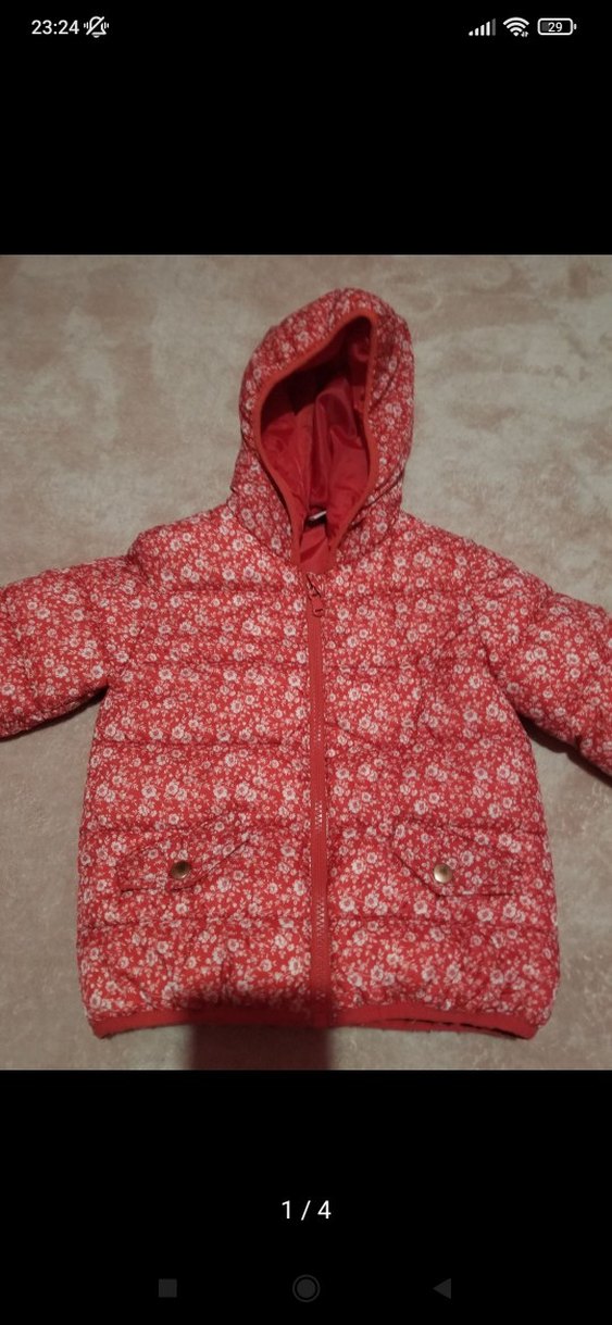 Kız çocukları için kapüşonlu ve fermuarlı, renkli çiçek desenli, yumuşak ve sıcak kumaştan yapılmış dar kesim kırmızı mont.