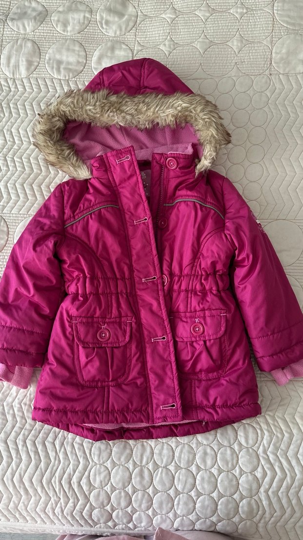 Kız Çocuk Kapüşonlu Koyu Pembe Mont
