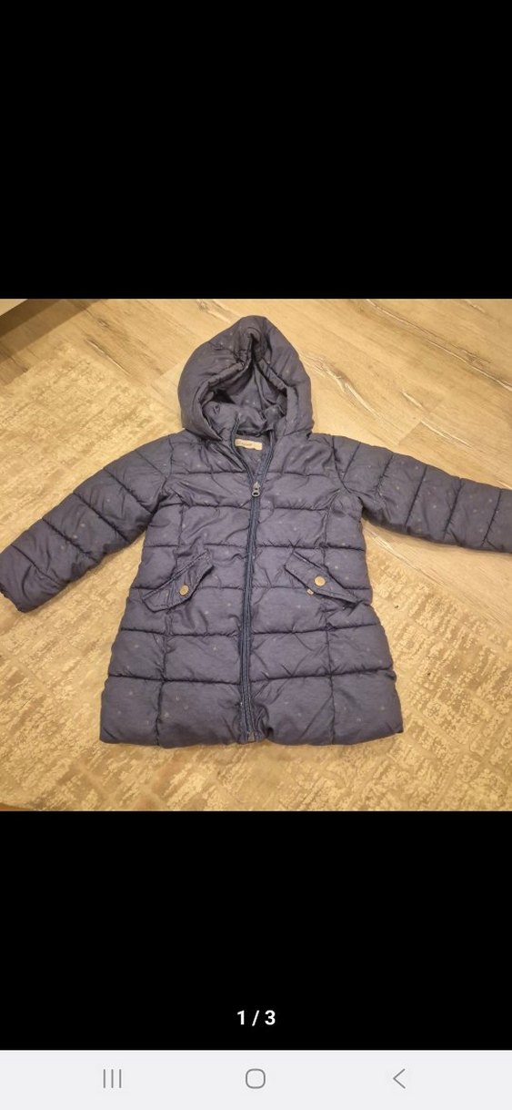 Kapüşonlu kız çocukları için lacivert renkli, yumuşak ve sıcak kumaştan yapılmış dar kesim mont. minik yıldız desenli sade tasarıma sahiptir.