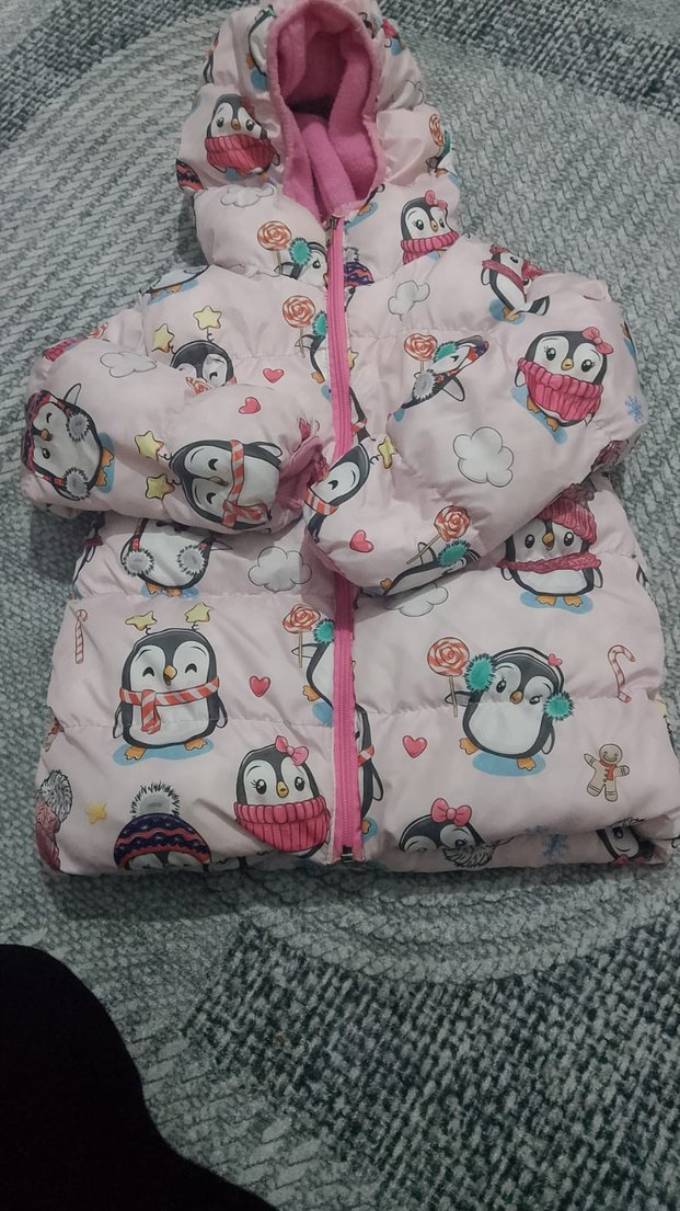 Kız Çocuk Kapüşonlu Pembe Baskılı Puff Mont