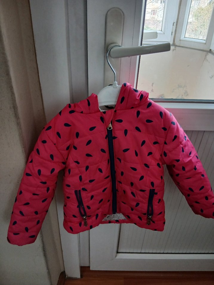 Kız çocukları için kapüşonlu ve fermuarlı cepli, pamamsı yumuşak ve sıcak kumaştan yapılmış pembe, renkli desenli dar kesim mont.