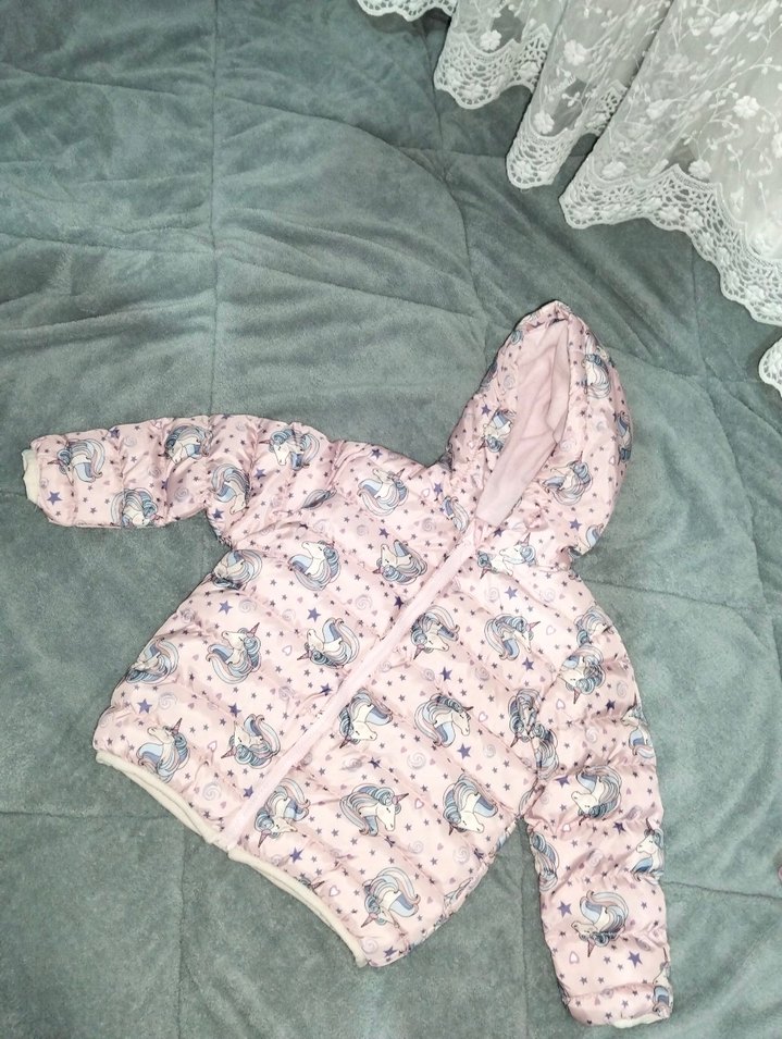 Kız Çocuk Kapüşonlu Pembe Desenli Mont