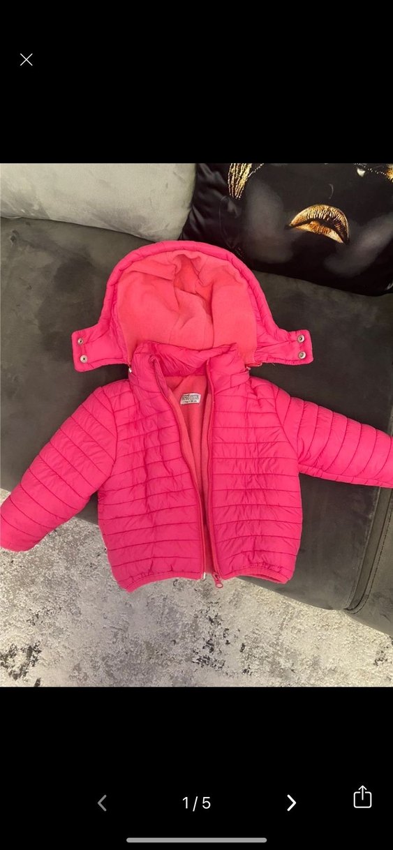 Kız Çocuk Kapüşonlu Pembe Fermuarlı Mont