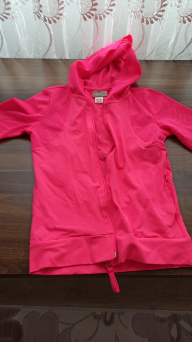 Kız çocukları için kapüşonlu, fermuarlı ve file detaylı pembe sweatshirt. Yumuşak ve sıcak kumaştan, sade ve canlı renkte, sokak stili için uygun.