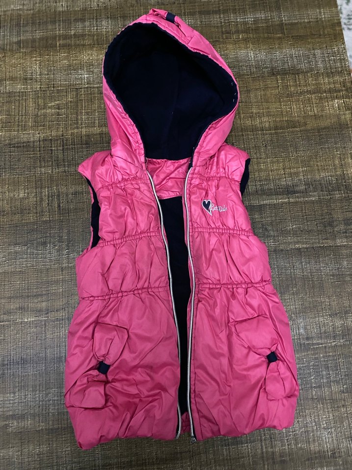 Kız çocukları için kapüşonlu, pembe renkli, fermuarlı ve kolsuz yelek. İnce kesim ve straplez yakaya sahiptir, sokak stiline uygundur. Tek kusuru fermuarı düştü takılabilir.