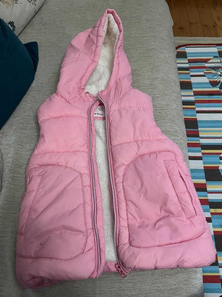 Kız Çocuk Kapüşonlu Pembe Fermuarlı Yelek