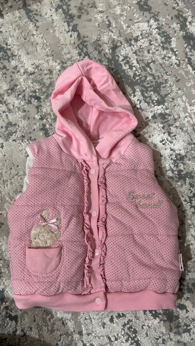 Kapüşonlu, yumuşak kürklü cepli, nakış detaylı pembe kız çocuk yeleği. Trendy ve rahat kesimle şıklık sunar.