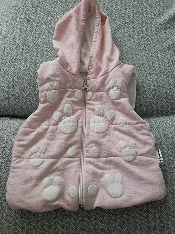 Kız çocukları için kapüşonlu, pembe ve nakışlı patili yelek. Yumuşak, sıcak kumaştan, kürk detaylı, trend casual tarzda. 9 aylıkken kullandık