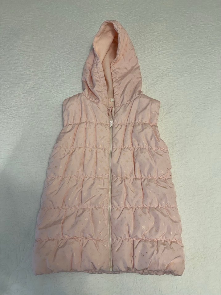 Kız çocukları için kapüşonlu, fermuarlı ve fitted kesime sahip pembe yelek. Yumuşak ve sıcak kumaştan üretilmiştir. Kızım çok severek kullandı. Yaldızları silik duruyor. Fiyatı uygun tutuyorum birinin ihtiyacı giderilsin.