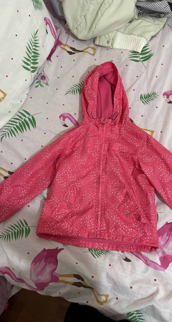 Kapüşonlu, fermuarlı ve renkli tie-dye desenli pembe kız çocuk yağmurluğu, sentetik kumaştan üretilmiştir. Şık ve rahat bir sokak stili sunar. ️