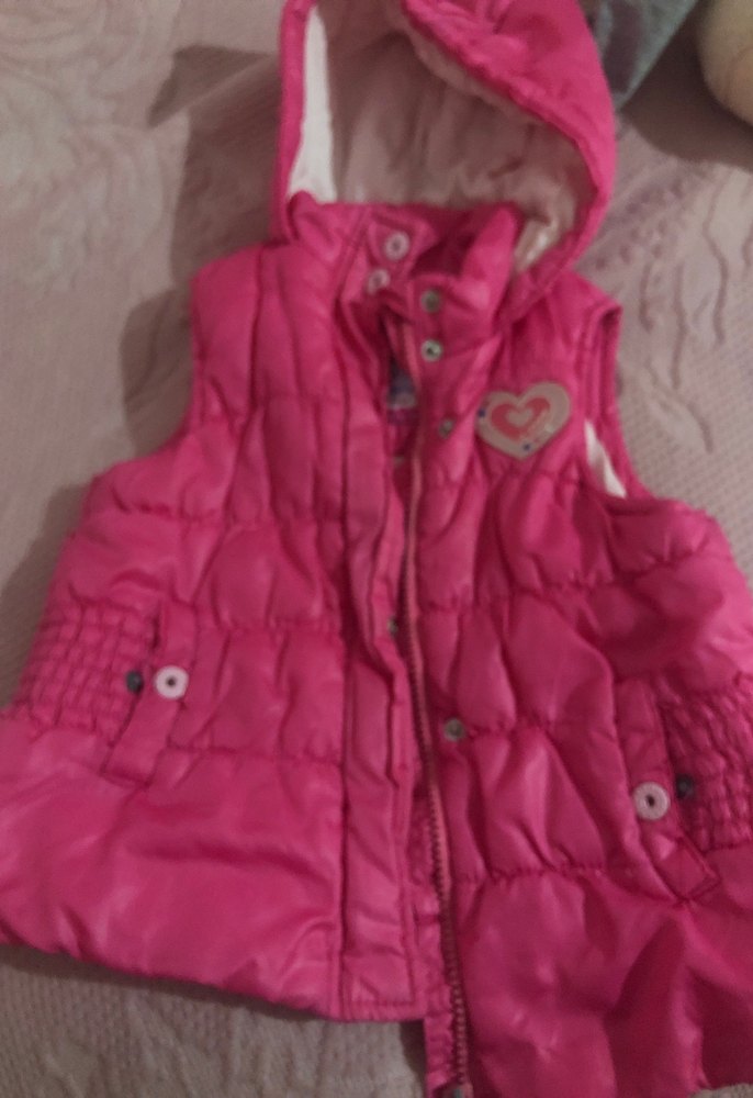 Kız çocukları için kapüşonlu, kürklü detaylı, pembe renkli, kolsuz ve dar kesim yelek. Yumuşak ve sıcak kumaştan, sokak stiline uygun.