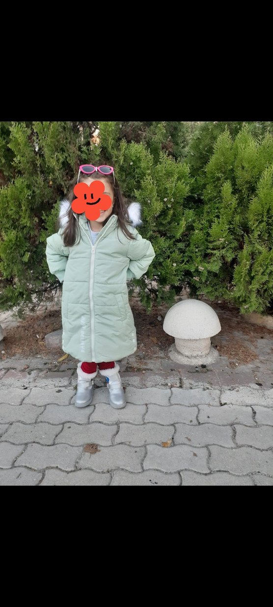 Kız çocukları için kapüşonlu, puff mont. Yumuşak ve sıcak kumaştan, su yeşili renkte, trend sokak stili için uygundur.