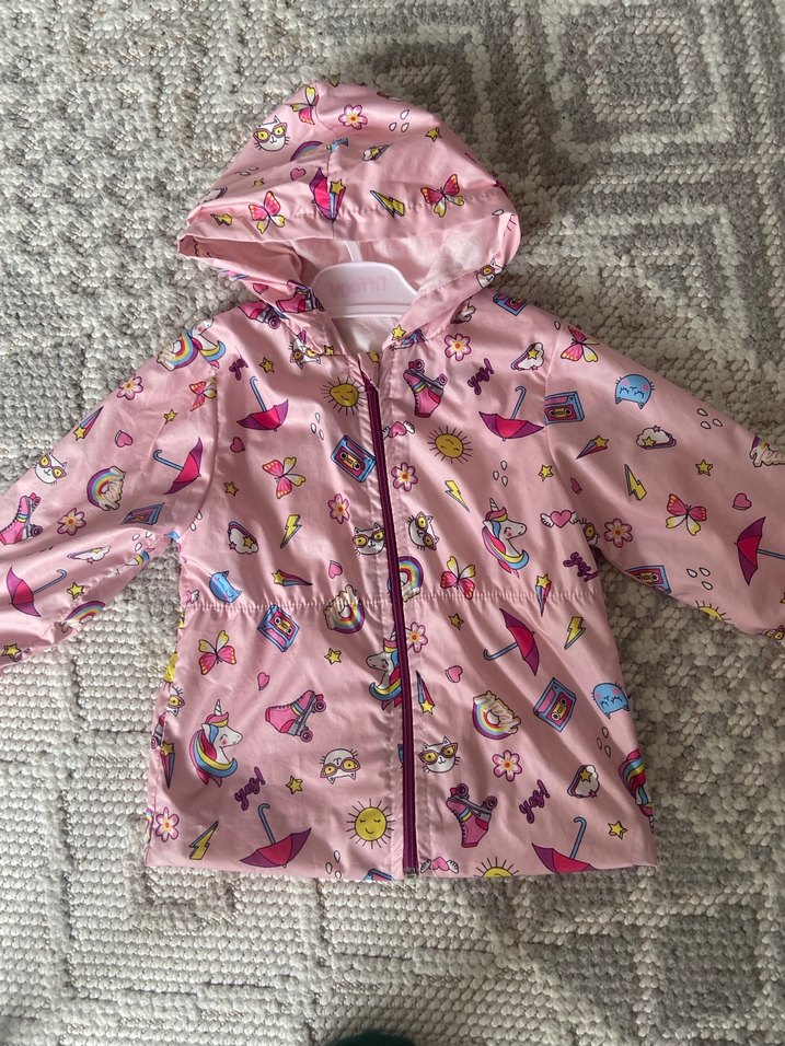Hiç kullanılmadı , etiketi ben aldığımda da yoktu, Yumuşak kumaştan yapılmış, renkli baskılı kız çocuk yağmurluğu. Kapüşonlu ve fermuarlı ön kısmı, rahat sokak stili için bol kesim sunar.