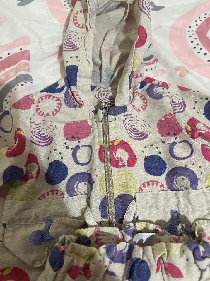 Kız Çocuk Kapüşonlu Renkli Desenli Ceket takım