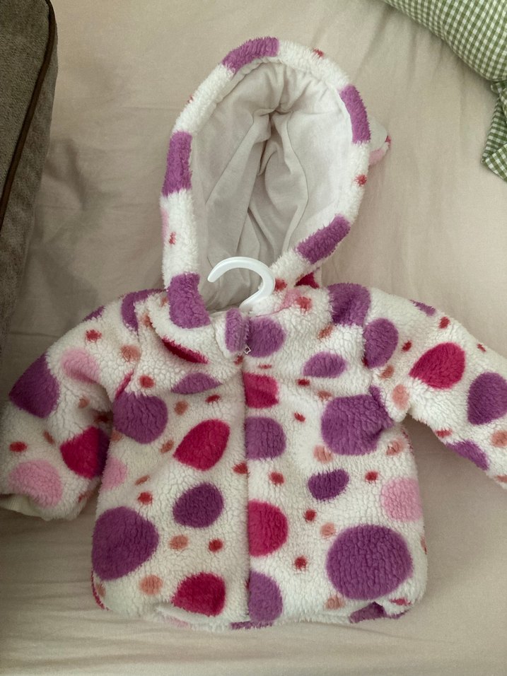 Kapüşonlu, kürklü detaylı, renkli desenliyumuşak ve sıcak kumaştan yapılmış kız çocuk montu kızıma aldım hiç giyilmedi