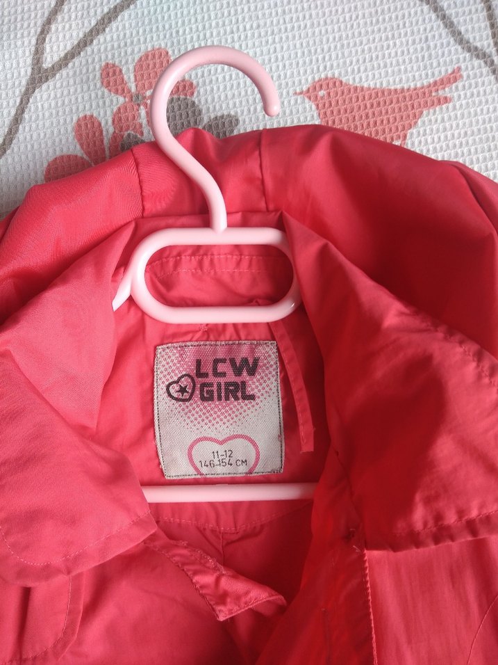 Renkli baskılı, kapüşonlu ve fitted kesim kız çocuk yağmurluğu . LCW Girl markalı.