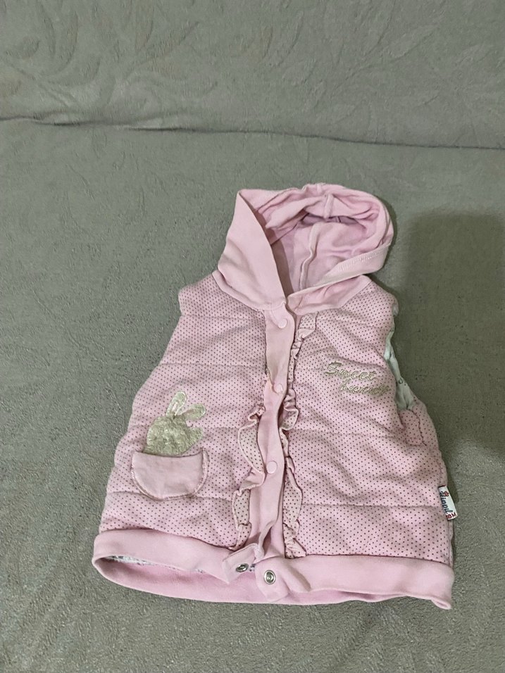 Kız çocuklar için kapüşonlu, triko dokulu ve işlemeli detaylı pembe yelek, rahat ve şık bir sokak stili sunar.