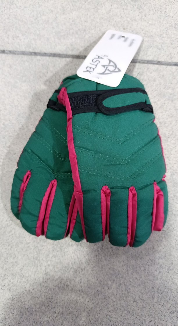Kız çocukları için yeşil ve pembe detaylı, yumuşak ve sıcak kumaştan yapılmış, cırt cırtlı bantlı eldivenler. Sokak stili için uygun.